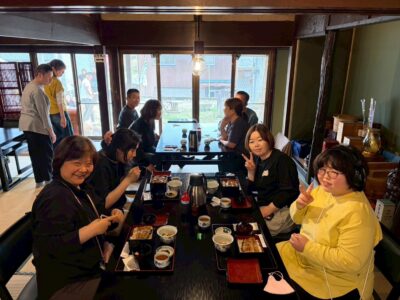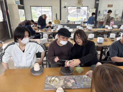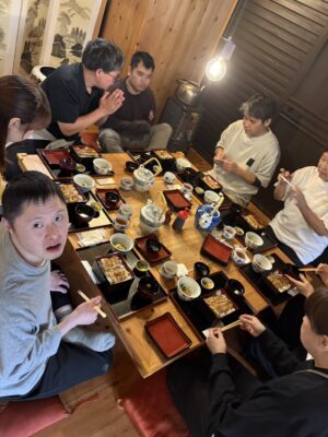 R8.4.18~19 一昨年の9月に島根旅行に行き、去年はバタバタで行けず…やっと!やっと!行って来ました(^▽^)/前回はかなりの遠出になったので今回は近場で滋賀旅行になりました。まずは信楽で絵付け体験です。予約していたマグカップがなく湯呑に変更になりましたがみんな中々の腕前で絵付け出来ました!するともうお昼です!みんなが一番楽しみにしている食事の時間です‼今回のお昼ご飯はうなぎです。看板犬のチャッピーも迎えてくれて、とっても美味しかったです😋