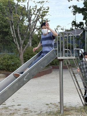 R7.10.3(金)長尾のみんなは買い物がてらに散歩で体力つくりです!しぇあはうすからゆっくり歩いて30分ほどの薬師谷公園に行ってきました。皆さん楽しそうに遊ばれていました。帰り道、先日行った王将を発見!何を食べたか?で盛り上がりました‼また行こうね~!と楽しみが増えました♪もう一枚の写真は一年ぶりに津田のamoにこにこ食堂へバスに乗って行ってきました。メニューは【クリームシチューとコーンご飯】夜の外出も楽しかったです♪♪